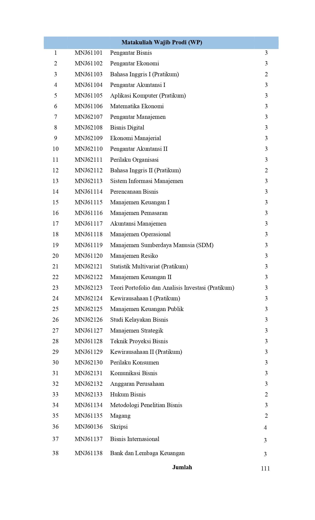 Kurikulum Fakultas Ekonomi dan Bisnis